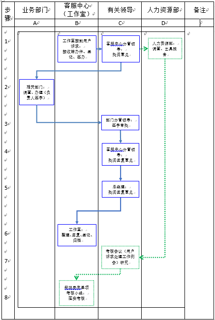 涉及服務(wù)投訴或應(yīng)追究相關(guān)部門(mén)責(zé)任的由客服中心分管領(lǐng)導(dǎo)安排人力資源部進(jìn)行調(diào)查,按程序落實(shí)考核。
